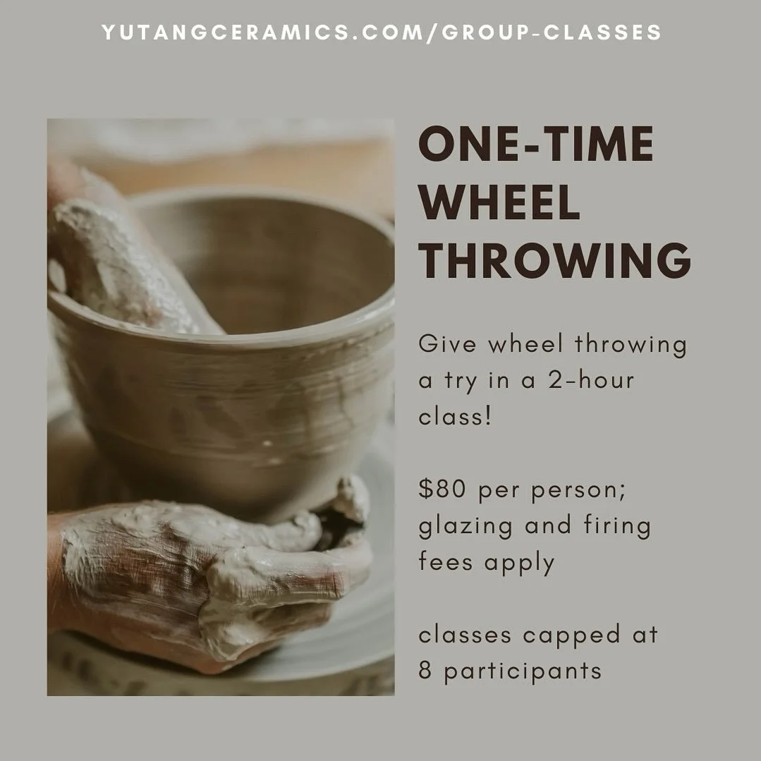 Wheel throwing is offered for this two-hour session. If you have a special project in mind for your lesson or would prefer to focus on handbuilding, please email us before booking! We can accommodate up to three people. For groups of four or more, please inquire about our private event rates.